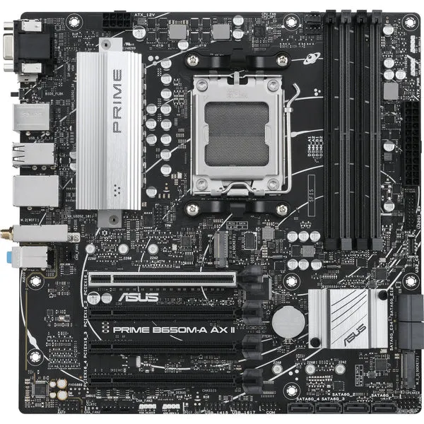 Whether you are looking for a no-frills replacement or building on a budget, the ASUS PRIME B650M-A AX II AM5 Micro-ATX Motherboard leverages the power of AMD's Ryzen 7000 processors while also supporting gaming-focused components.