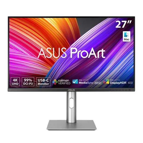 Bring your professional projects to life with the 27″ ASUS ProArt Display PA279CRV 4K HDR Monitor. Designed to deliver exceptional color, this Calman verified 3840 x 2160 resolution 4K display is factory calibrated for Delta E <2 accuracy, covering 99% of the DCI-P3 gamut. You can quickly switch to other gamut presets such as sRGB and Rec. 709 to fit with your photo, video editing, and color grading needs. VESA DisplayHDR 400 certified high-dynamic range support provides images with bright highlights and deep shadows. Built in Adaptive-Sync technology helps to reduce screen tearing and stuttering from fast action videos with compatible graphics cards. You can connect this monitor to your system using the DisplayPort and HDMI ports or use the USB-C connector to transfer video, data, audio, and up to 96W of power over a single cable with compatible laptops. With razor thin bezels and a DisplayPort Out connector, you can enhance your workflow by daisy chaining multiple ProArt Display monitors together. There is also a built-in USB 3.2 Gen 1 hub that includes three USB-A ports and one USB-C port, allowing you to charge your devices and connect 5 Gb/s compatible peripherals to your system through the monitor. Exceptional Color Designed for creative professionals, the ProArt Display PA279CRV is factory calibrated and Calman-verified for a color accuracy average of Delta E <2. Additionally, it’s 27″ In-Plane Switching (IPS) panel supports a crisp 3840 x 2160 4K resolution, providing 1.07 billion colors that cover 99% of the DCI-P3 and 99% of the Adobe RGB gamut. Other features include high-dynamic range support, a 1000:1 static contrast ratio, 400 nits peak brightness, and 5 ms (GtG) response time. Quick Color Gamut Adjustments Use the integrated ProArt Presets to switch between multiple color settings that include sRGB, Rec.709, Adobe RGB, DCI-P3, and DICOM modes. The PA279CRV is compliant with the DICOM Part 14 standard to ensure smooth gradations and accurate identification of grayscale shading. Sleek Design The ProArt Display PA279CRV features a space-saving design that’s 33% thinner and 30% slimmer than the previous generation, measuring just 8mm at its slimmest point. The aluminum plate ensures optimal cooling performance, and the stand includes a convenient cable management system. Versatile Connectivity The ASUS ProArt Display includes two HDMI 2.0 ports alongside a DisplayPort 1.4 input. You can also transfer video, data, and up to 96W of power over a single cable using the main USB-C port. Connecting compatible computers gives you access to a hub comprised of a 15W USB-C 3.2 Gen 1 port and three 5 Gb/s USB-A ports. A 3.5mm headphone jack is also available for listening privacy. Daisy Chain Expand your view by using daisy chaining additional displays to a single source using the DisplayPort out connector. ProArt Palette Customize your display with a variety of adjustments, including color hue, temperature, and gamma configurations, using an onscreen menu. QuickFit Plus The ASUS QuickFit Plus feature overlays a grid onto your projects, allowing you to preview and align content in real-time. The center marker and safety area tools help you to avoid bringing video images beyond the screen when you’re on the set shooting. The ruler provides an actual size inch ruler along the screen’s edge, and you can customize its size to fit your preference. ASUS Eye Care ASUS Ultra-Low Blue Light and Flicker-Free technologies help to reduce eyestrain for comfortable viewing over extended periods of time. Ergonomics Rotate the screen 90° in either direction to view content in portrait mode and adjust the height, tilt, and swivel to match your preferences. The 178° horizontal and vertical viewing angles allow you to see the screen clearly from almost any position. Additionally, the stand’s quick release makes it easy to remove the display so that you can mount it to a wall or swivel arm using the 100 x 100mm VESA pattern.