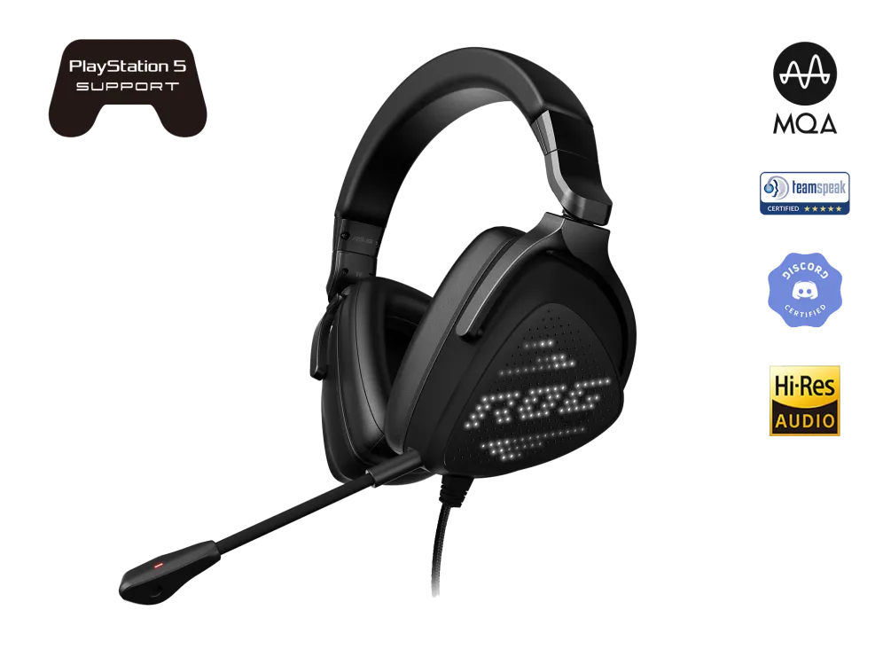 gaming headset with customizable AniMe Matrix™ display, hi-fi ESS 9281 Quad DAC™, MQA, AI Noise-Canceling Mic, compatible with PCs, PlayStation