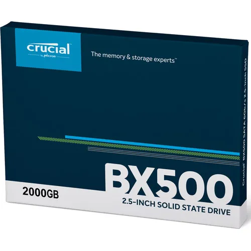 Store and access your files quickly and efficiently with the 2TB BX500 SATA III 2.5" Internal SSD from Crucial. This solid-state drive supports sequential read speeds up to 540 MB/s and sequential write speeds up to 500 MB/s, making it easy to transfer large files quickly. Furthermore, you can boot up your system quicker, load files quicker, and improve your overall system performance. This SSD will fit into 2.5" drive bays that support drive heights of 7mm. Also featured is a SATA III 6 Gb/s interface, a 1.5 MTTF (mean time to failure) rating, and Micron 3D NAND technology.