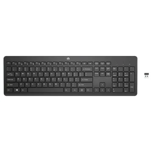 Experience a keyboard that’s comfortable, sleek and quiet. With a chiclet keyboard you can be at your most efficient with the least amount of noise. Also, enjoy a clutter-free environment and the freedom to roam with a 2.4GHz wireless connection[1]. Plus, with keyboard shortcuts and long-lasting batteries, you can stay productive all day long. Stylish design with comfort in mind The chiclet keyboard design lets you enjoy comfortable, more accurate typing with less noise. Free yourself from the wires Reduce clutter and enjoy the freedom to move around lag-free with a 2.4GHz wireless connection[1]. Productivity at your fingertips Increase productivity with a keyboard that easily activates all 12 function keys with just one click. Just 1 set of batteries. Up to 16 months of power[2]. Serious battery life with a keyboard that lasts up to 16 months[2]. Hardware compatibility Compatible with PCs with available USB-A port. Technical Detail Brand : HP Model : 3L1E7AA