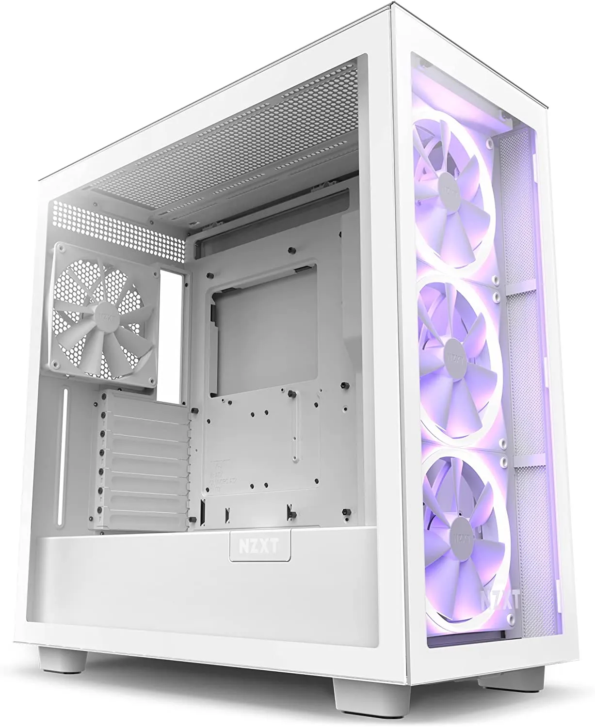 | ABOUT THE PRODUCT The H7 Elite combines luminous style with a large form factor, making it a elegant way to accommodate premium components. With improved airflow, a streamlined build experience, new color options, and a tempered glass front panel, the H7 Elite is the perfect case for high-performance, RGB-focused builds. THERMALLY EFFICIENT We've opened up the top panel to achieve even better thermal eciency. The perforated panel provides improved ventilation as warm air flows through the top of the chassis, enabling even cooler temperatures. The top and front of the case support radiators up to 360mm for maximum cooling support. Three pre-installed RGB fans mean users get RGB cooling right out of the box. BUILDING SIMPLIFIED Streamline the build process with an improved cable management system. Wider cable channels provide more room to easily route cables, while the addition of hooks add stability to hold everything in place. Ample space and clearance make the H7 Elite a spacious chassis for ambitious builds. A MODERN LOOK The H7 Elite comes in two color options that fit in seamlessly with any aesthetic. Both options are combined with a tempered glass side panel that complements the chassis color. BETTER WITH CAM H7 ELITE The built-in RGB & Fan Controller allows users to personalize RGB lighting and control fans with NZXT CAM. Mix and match any NZXT RGB lighting accessories and sync them across multiple channels. |