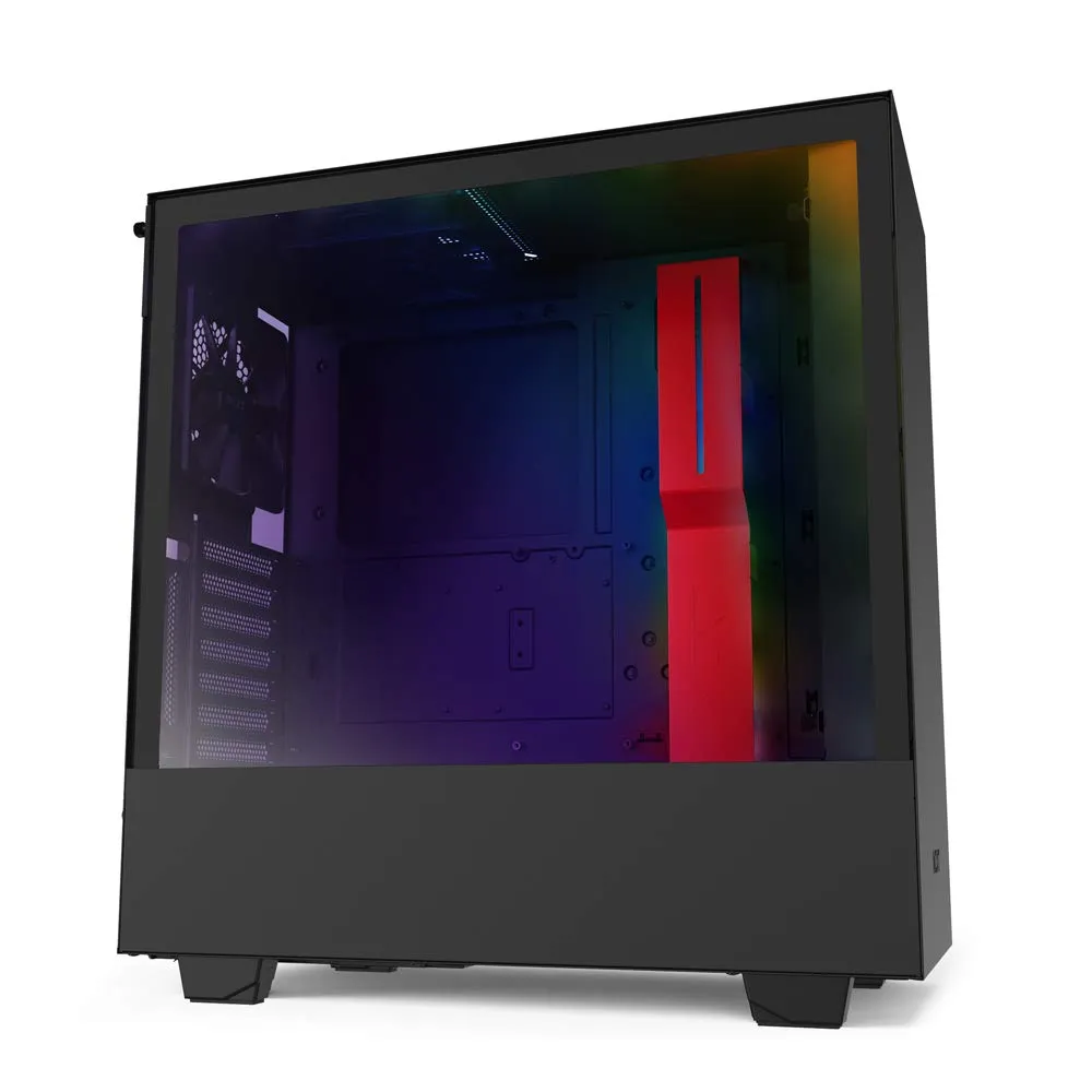 The H510i compact mid-tower ATX case is stunning and an excellent value. Perfect when you want a small-footprint ATX case without sacrifice. Well-engineered airflow, removable radiator mounting bracket, flush tempered-glass window, multiple fan filters, vertical GPU mount, and a front panel USB-C connector are just some of the key features. The H510i also includes the NZXT Smart Device V2, powering the built-in RGB light strips and case fans.