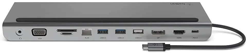 Connects USB-C devices to projectors, monitors, SD cards, and thumb drives